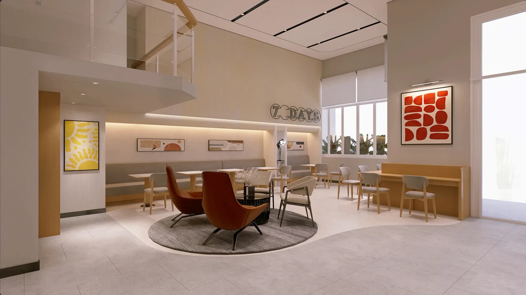 Stepping into the lobby of 7 Days Hotel, you'll immediately feel a sense of calm and comfort. The warm lighting, carefully selected furniture, and thoughtful design create an atmosphere that invites you to pause, relax, and truly unwind.